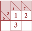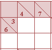 Le 3 = 1+2 et 4 = 1+3. Le seul chiffre en commun est le 1 dont il faut le placer à l'intersection de la ligne du 3 et de la colonne du 4. On en déduit le placement des deux autres chiffres :